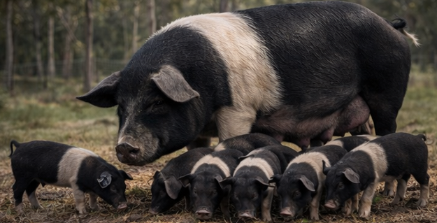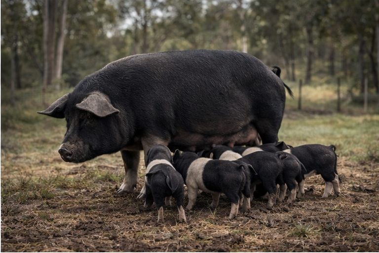 Sows farrow in safe, secure environments where piglets are protected during their earliest days — even from wedge-tailed eagles.
